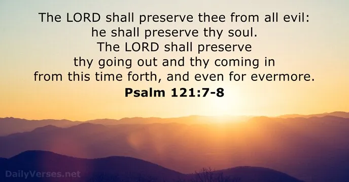 Psalm 121:7 KJV ~The Lord shall preserve thee from all evil: he shall preserve thy soul.